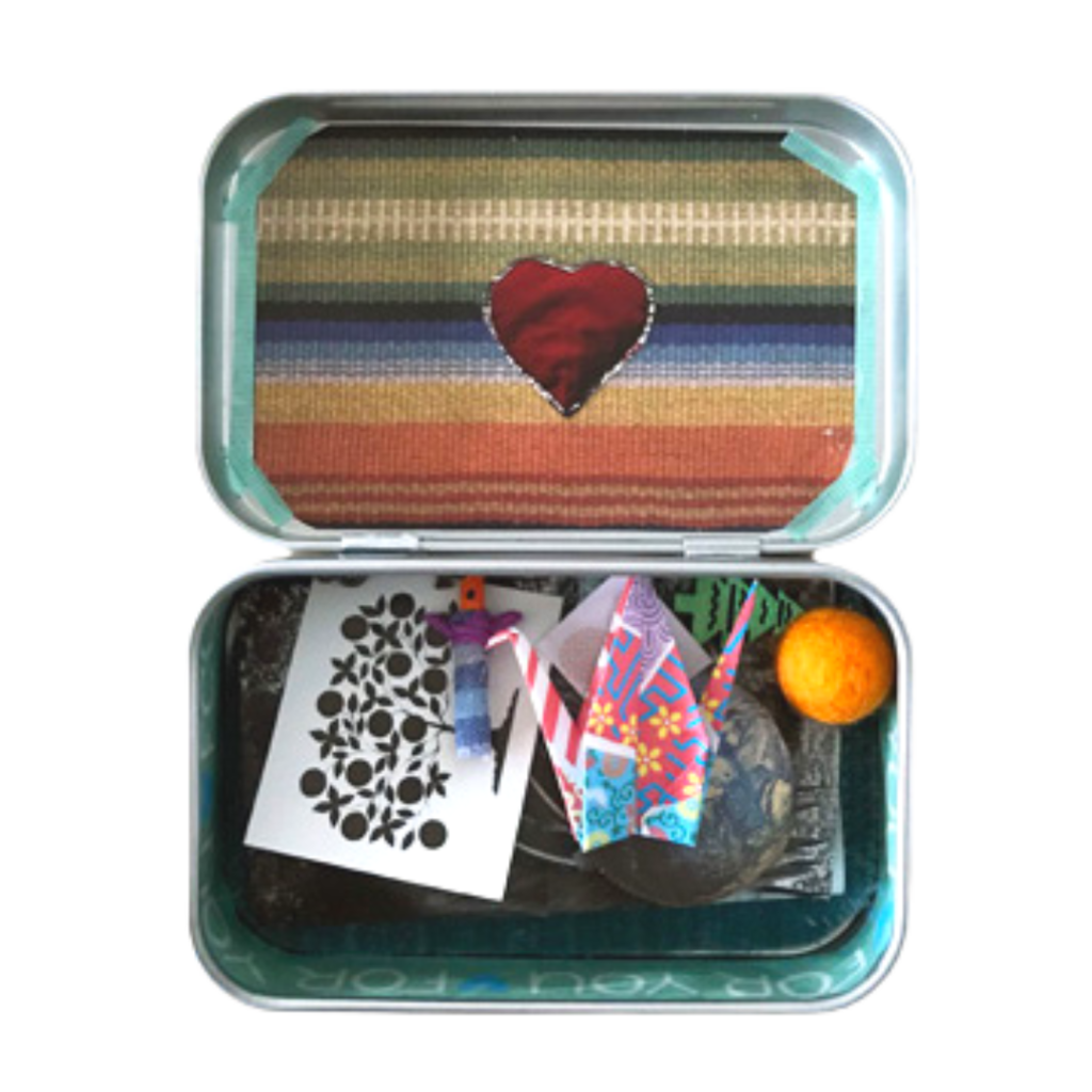 Cut out words from magazines and junk mail and you have a poetry kit! You can use tape or (if your Kit is metal) magnetic backing to create messages to display on the inside or outside of your Kit. Changing your message every day can be a nice daily ritual.
